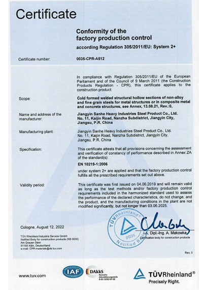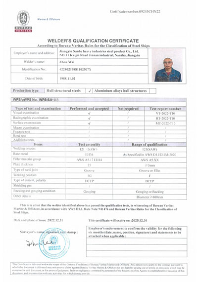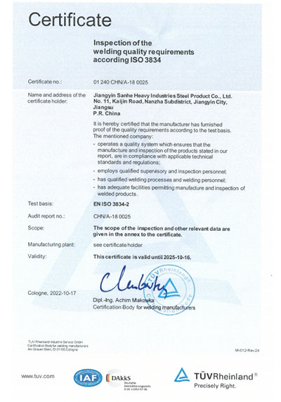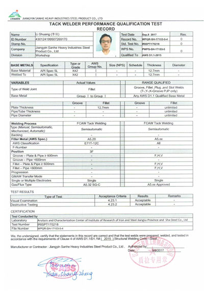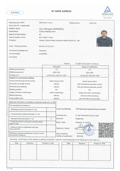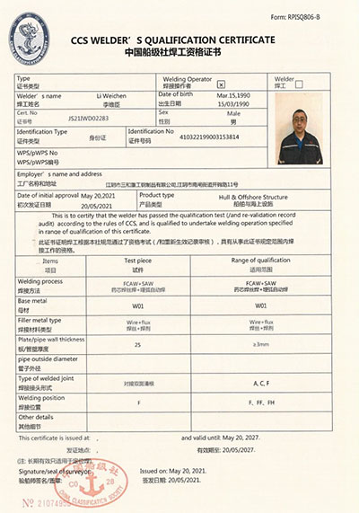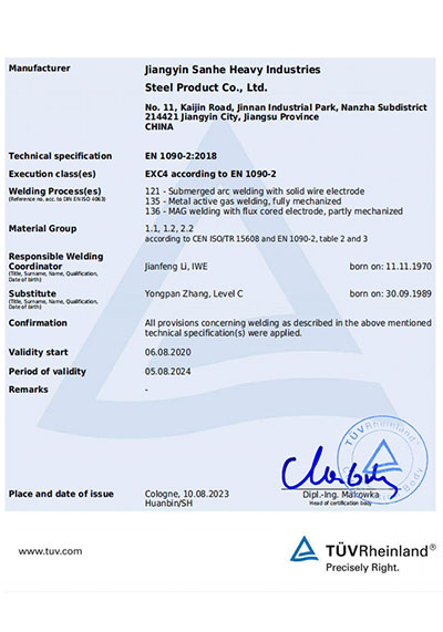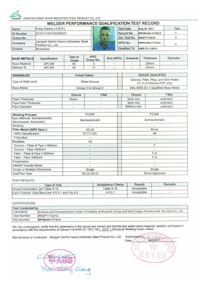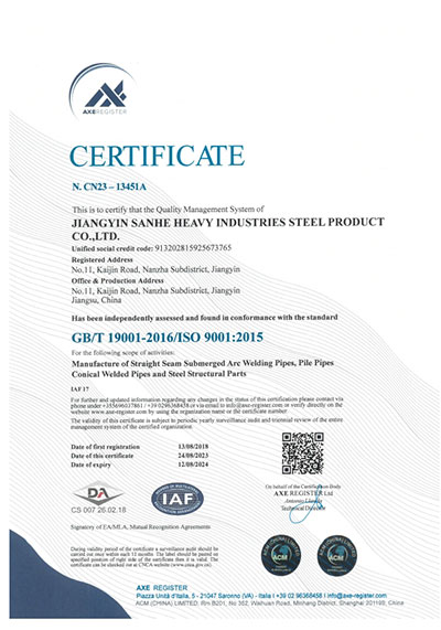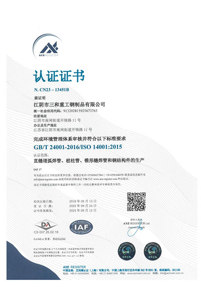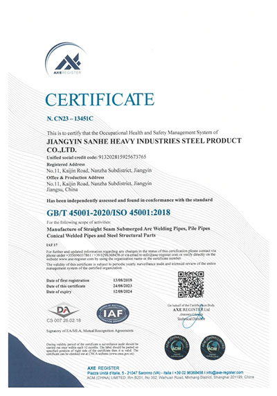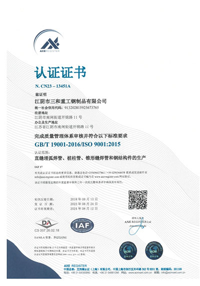 江陰市三和重工鋼制品有限公司成立于2012年3月,總投資1.2億,坐落于江蘇省江陰市南閘錦南工業區,占地4萬平方米,廠房面積3萬平方米。專業從事大口徑厚壁直縫埋弧焊接(LSAW)鋼管、方管、錐管,RBE卷制埋弧焊接鋼管的研發、生產和銷售。公司憑借著嚴謹的產品質量管理,先后通過了ISO三體系認證,RS、BV等船社級工廠認證,同時取得了CE CPR,API2B等歐美地區資質認證。公司擁有一條完整的,可以生產單支長度達到12米的JCO直縫埋弧焊鋼管生產線(品牌:美國林肯) ,3套卷管生產線以及異型管生產線。公司主要產品有各種大小厚壁直縫埋弧焊管、卷管、方管、矩形管、錐管、多邊形管等,主要以厚壁管為主??砂磭覙藴蔊B9711 、GB50250 系列 ,國際標準API? SPEC 2B及EN10210、EN10219、EN10208、 A671、A672等生產各種規格鋼管,年綜合產能達20萬噸,產品廣泛應用于海上 石油鉆井平臺、輸煤漿、輸水、特高壓輸電鐵塔電,石油化工、高層建筑鋼結構建筑工程、大型海洋碼頭樁管等領域。公司擁有一支由我國制管行業領先的技術團隊,并與國內制管技術與工藝方面的專家、科研院所建立了密切的合作關系, 研發能力處于國內先進水平,專門生產厚壁鋼管。為擴大產能,滿足對客戶長直管的需求,2023年11月30日,在靖江:江陰-靖江工業園區成立了三和重工的全資子公司:江陰市永祥鋼制品有限公司,可以對接環焊總長超過三十米的焊接鋼管及各類型鋼結構產品。江陰市三和重工鋼制品有限公司扎根于江陰,放眼于全球,通過持續的產業規模擴張和技術提升,立志成為大直縫埋弧焊管行業具有國際影響力的企業。